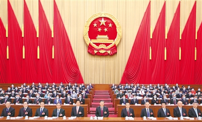 十四届全国人大一次会议在京开幕 习近平栗战书汪洋李强王沪宁韩正蔡奇丁薛祥李希王岐山等在主席台 李克强作政府工作报告 赵乐际主持大会 听取关于立法法修正草案的说明等就座
