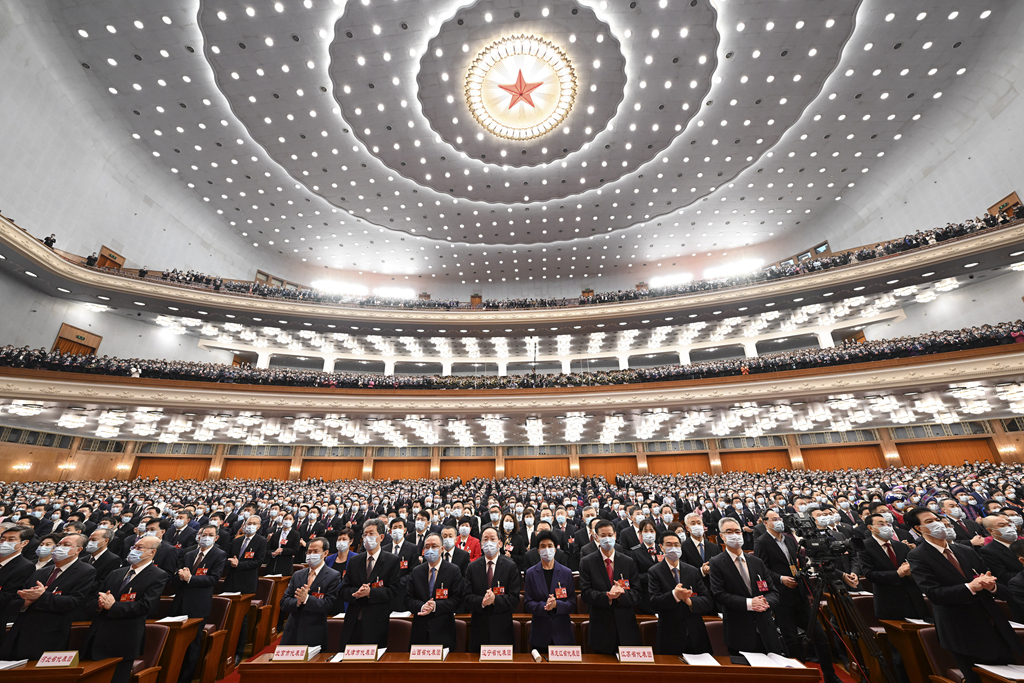 3月5日,第十四届全国人民代表大会第一次会议在北京人民大会堂开幕。党和国家领导人习近平、李克强、栗战书、汪洋、李强、王沪宁、韩正、蔡奇、丁薛祥、李希、王岐山等出席会议。新华社记者 鞠鹏 摄