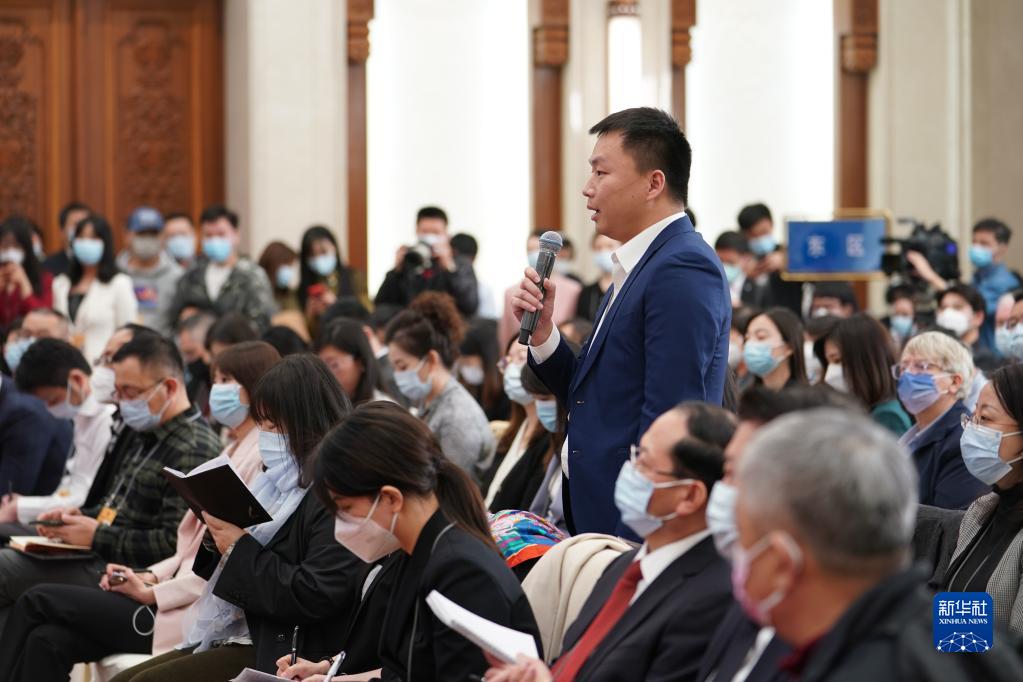 3月4日,十四届全国人大一次会议在北京人民大会堂举行新闻发布会。大会发言人王超就大会议程和人大工作相关问题回答中外记者的提问。这是新华社记者在发布会上提问。 新华社记者 邢广利 摄