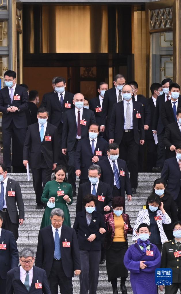 3月11日,中国人民政治协商会议第十四届全国委员会第一次会议在北京人民大会堂举行闭幕会。这是闭幕会后,委员们走出人民大会堂。 新华社记者 刘金海 摄