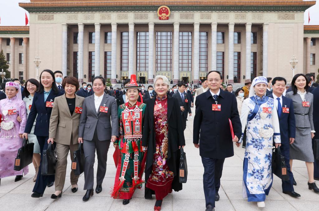 3月13日,第十四届全国人民代表大会第一次会议在北京人民大会堂举行闭幕会。这是闭幕会后,代表走出人民大会堂。 新华社记者 张铖 摄