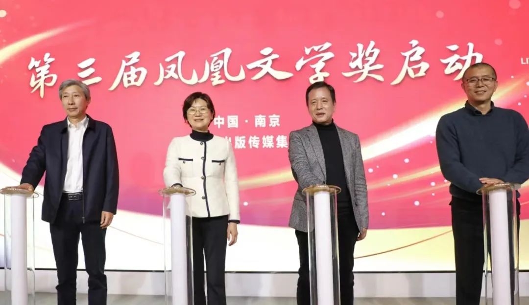颁奖仪式后,中国作协副主席李敬泽,江苏省委宣传部副部长徐宁,中国作协副主席、江苏省作协主席毕飞宇和凤凰出版传媒集团董事长孙真福共同为第三届“凤凰文学奖”启动揭幕。