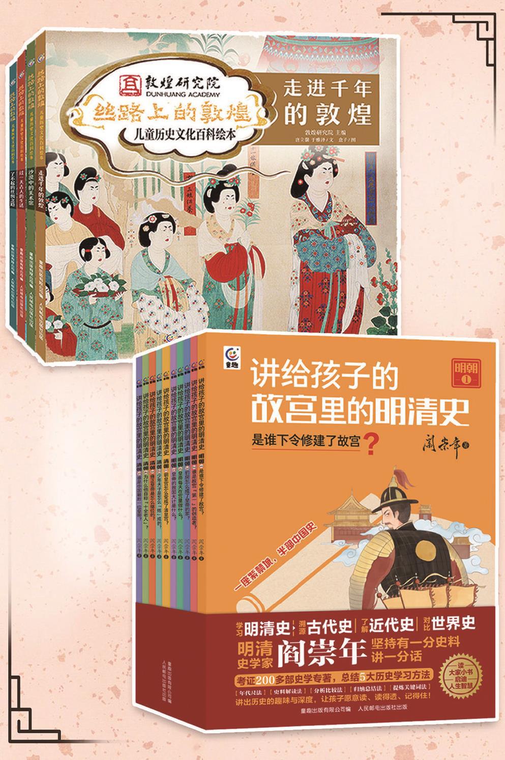 《丝路上的敦煌:儿童历史文化百科绘本》开启妙趣横生的历史穿越之旅。 《讲给孩子的故宫里的明清史》共十册,串联起建筑、典籍、文物等多方面知识。(均出版方供图) 制图:冯晓瑜