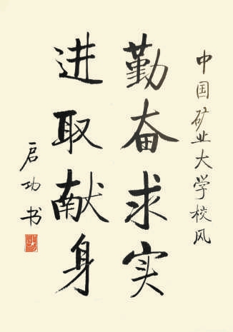启功先生为中国矿业大学题写的新校风“勤奋、求实、进取、献身”