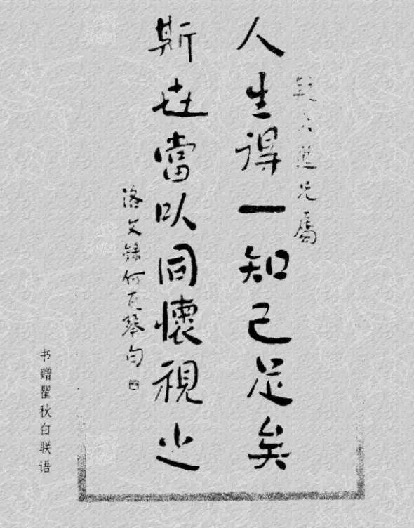 人物的重新出现作为政治评价发生转变的标志,“七人照”并非孤证,1981年版还有两张照片需要讨论。一是第五卷第三张“书赠瞿秋白联语”。自从1964年毛泽东对李秀成自述和瞿秋白《多余的话》的批评,瞿秋白被定性为党内叛徒,“文革”期间瞿秋白及其父母墓被砸毁。“文革”结束后虽然历经曲折,瞿秋白正式平反要等到 1982年9月中共第十二次全国代表大会中纪委的报告,但事实上的平反在1980年已经开始。是年6月17日,中国文联、中国作协和中国社会科学院在人民大会堂联合举行座谈会,纪念瞿秋白就义45周年,周扬在会上讲话,高度赞扬瞿的一生。1980年10月19日,中共中央办公厅发出了转发中纪委《关于瞿秋白同志被捕就义情况的调查报告》的通知,认定《多余的话》绝不是叛变投降的自白书,标志着对从1964年就开始罗织的“瞿秋白自首叛变案”的平反。[29]考虑到第五卷的发稿时间也是1980年[30],基本与瞿秋白平反同步,1981年版《鲁迅全集》特意挑选鲁迅给瞿秋白写的条幅,昭示鲁迅与瞿秋白生死知己的关系,似乎有确认与加持瞿秋白平反的作用。