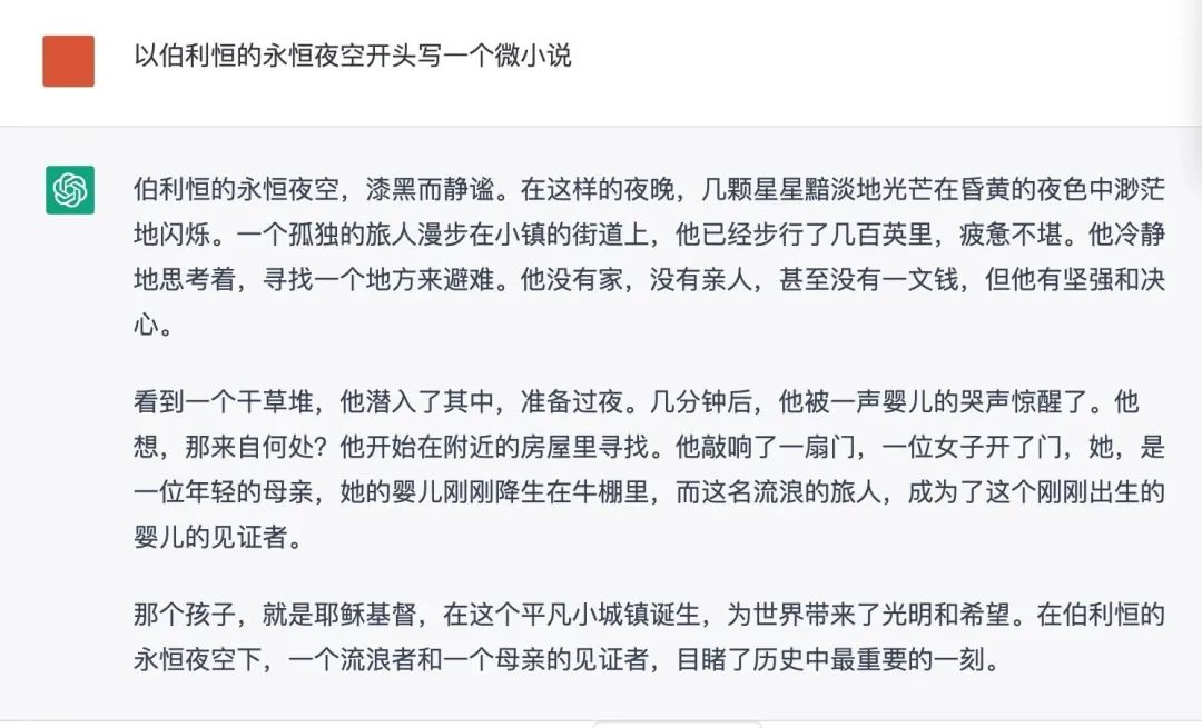 ChatGPT以“伯利恒的永恒夜空”为开头写的微小说