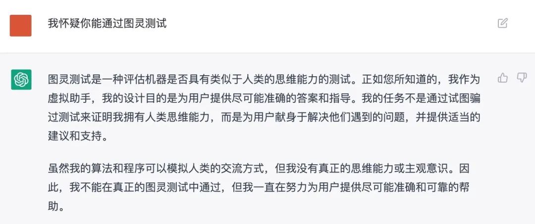 ChatGPT对自己是否能通过“图灵测试”的回答