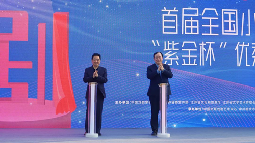 中国文联党组成员、副主席、书记处书记俞峰(右),江苏省委常委、宣传部部长张爱军(左)启动展演活动