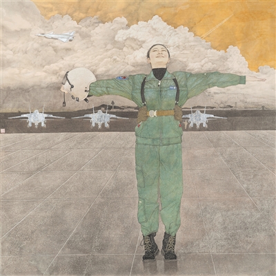 “第五届全国中国画展览”上的中国画《当代巾帼》,作者曹晶。