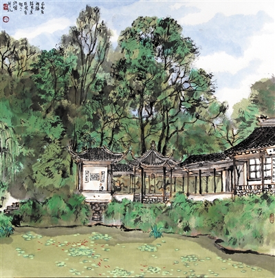 “时代新象——中国艺术研究院国画院第五届院展”上的中国画《无锡写生——锡惠园林一景》,作者许俊。