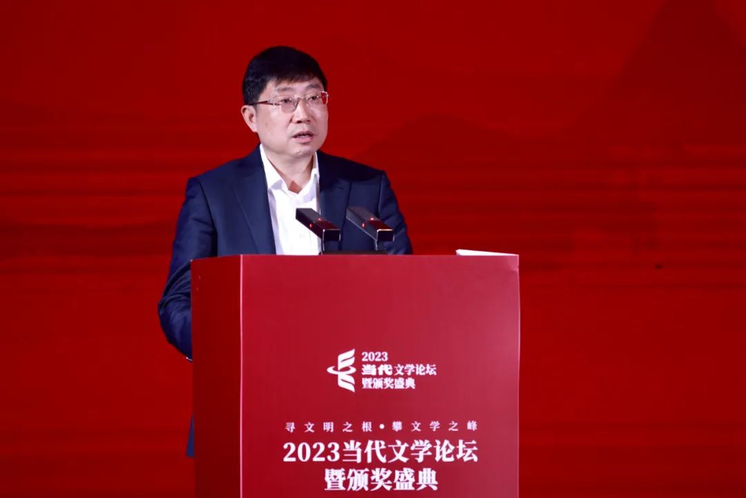 陈永刚副总经理代表中国出版集团对本次活动的成功举行表示祝贺,他表示,中原文化博大精深、源远流长。《当代》文学论坛暨颁奖盛典移师中原大地,让文学回到文化的原乡,对于推动当代文学的发展具有重要的标志性意义。尤其是这次活动在世界读书日前夕举办,将为开展全民阅读、建设书香社会、弘扬中华优秀文化起到极大的推动作用。