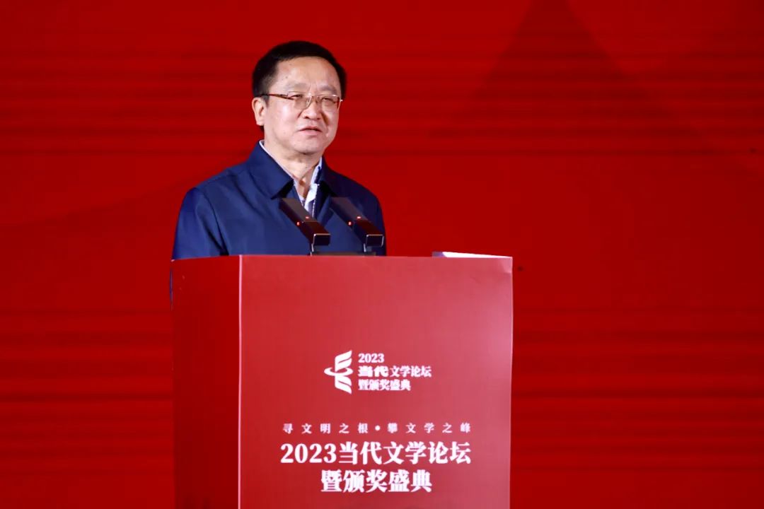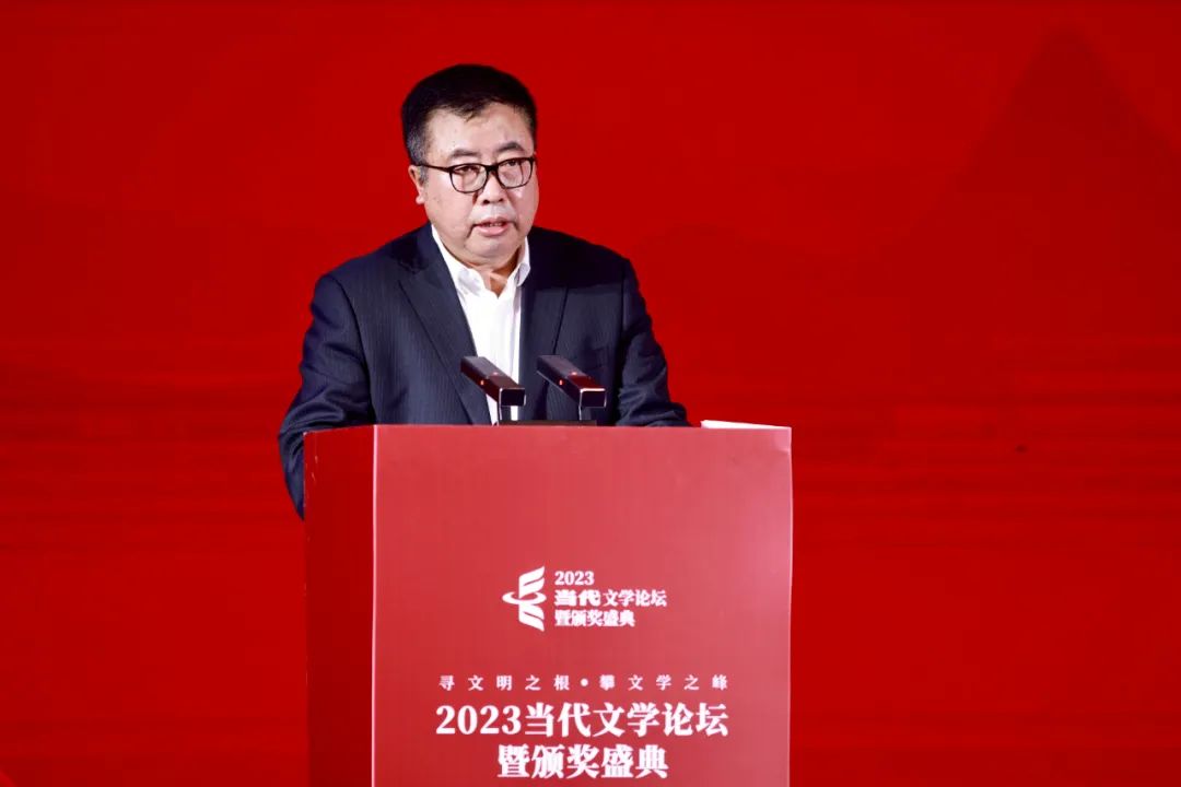 中国出版集团有限公司董事、总经理、党组副书记常勃在致辞中指出,人民文学出版社与河南的这次联手,堪称“天作之合”,是文学在走向高峰的征途中,对文化根脉的拥抱,也是波澜壮阔的新时代与千年文明的融汇和激荡。本次活动不仅汇集了一年来众多文学大家的精品创作,也融汇了全国上下开展全民阅读、建设书香社会、助推文学由高原走向高峰的共同心愿。希望通过大家的共同努力,为当代文学事业打开新局面,让描绘时代恢弘画卷的新作力作成为广大读者的精神食粮。中国出版集团作为“出版国家队”,将一如既往地为作家营造良好的创作环境、传播生态,全力推广并及时褒扬优秀作品,在固本培元中促进创作繁荣,从高原攀向高峰。