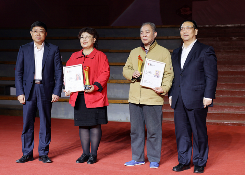 中国出版集团有限公司总经理常勃、副总经理陈永刚为年度致敬作家梁晓声、徐坤颁奖