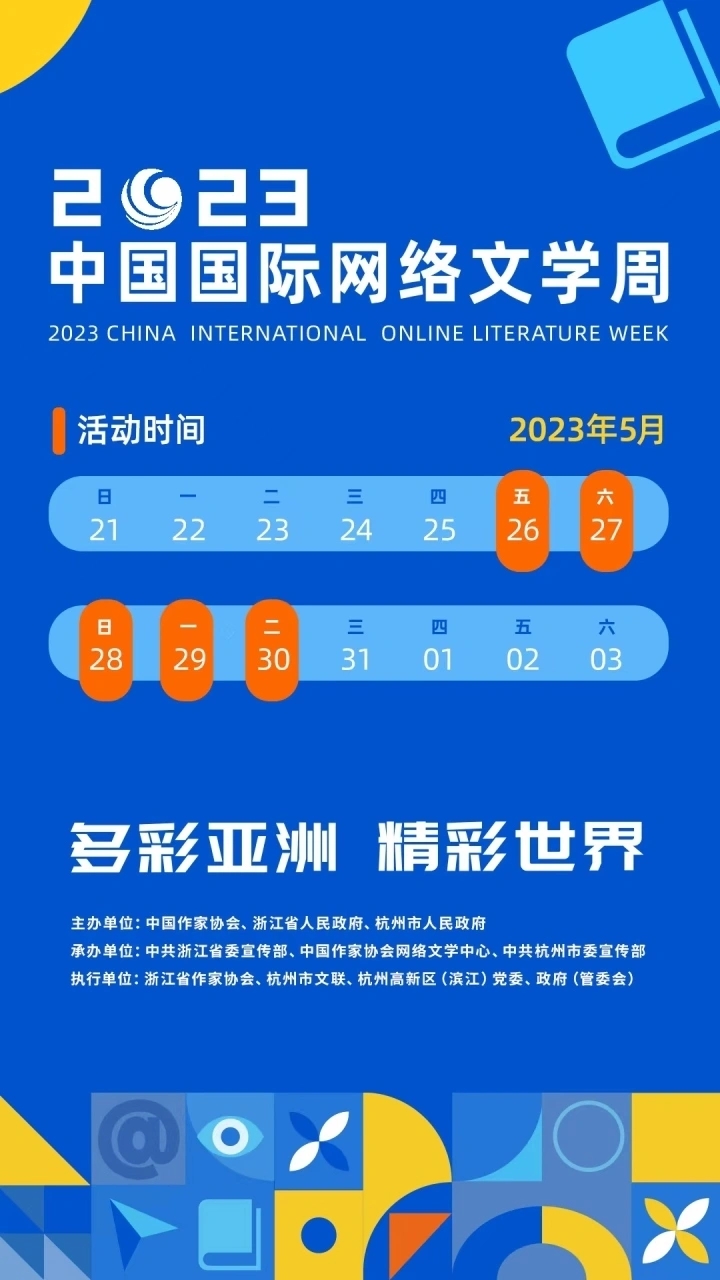 5月27日,由中国作家协会、浙江省人民政府、杭州市人民政府共同主办的2023中国国际网络文学周,即将在浙江杭州开幕。