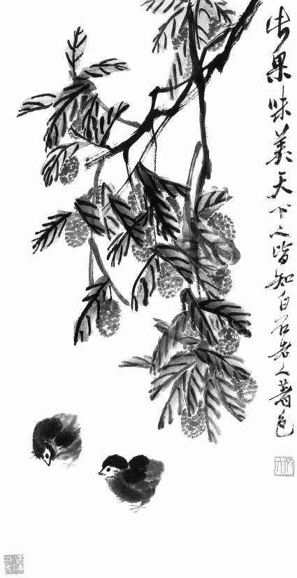 齐白石绘《荔枝小鸡》