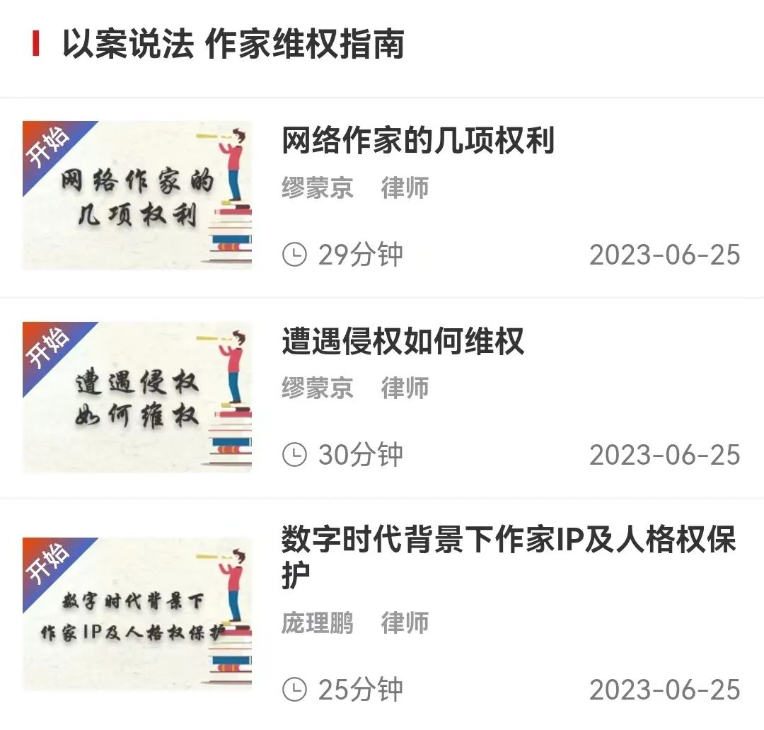 去年七月,网络文学中心成立全国第一家网络文艺知识产权纠纷人民调解委员会。一年来,调委会成功调解多起网络文学知识产权领域纠纷,为作家追回数十万财产损失,得到了网络文学界的一致认可。在调委会成立一周年之际上线的维权培训,将进一步维护网络作家的合法权益,保护网络文艺作品的知识产权,构建网络文学良好的行业生态。