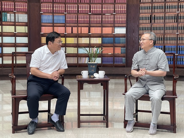 7月5日,受中国作家协会选派,山东作家杨义堂走进孔子博物馆,在孔子博物馆副馆长杨金泉及信息部、礼乐所等部门负责人的陪同下参观了博物馆的文物展览和箫韶乐舞表演,并就孔子博物馆的珍贵文物、孔府档案等采访了杨金泉副馆长,通过实地采访交流,用文学的视角触摸历史,探秘中华文明,感受中华文明的魅力。
