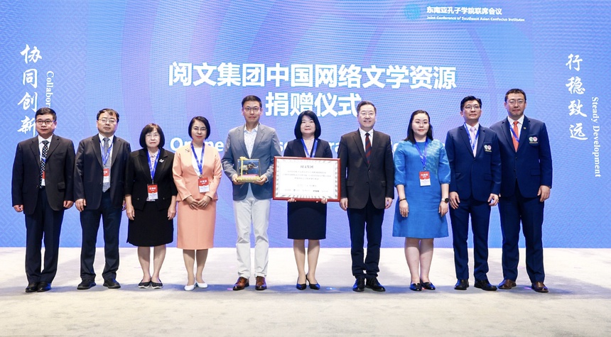 7月20日,由中国国际中文教育基金会主办、北京语言大学承办的东南亚孔子学院联席会议在北京召开。会上举行了阅文集团中国网络文学资源捐赠仪式,中国国际中文教育基金会副秘书长、北京师范大学副校长周作宇等相关代表参加捐赠仪式。