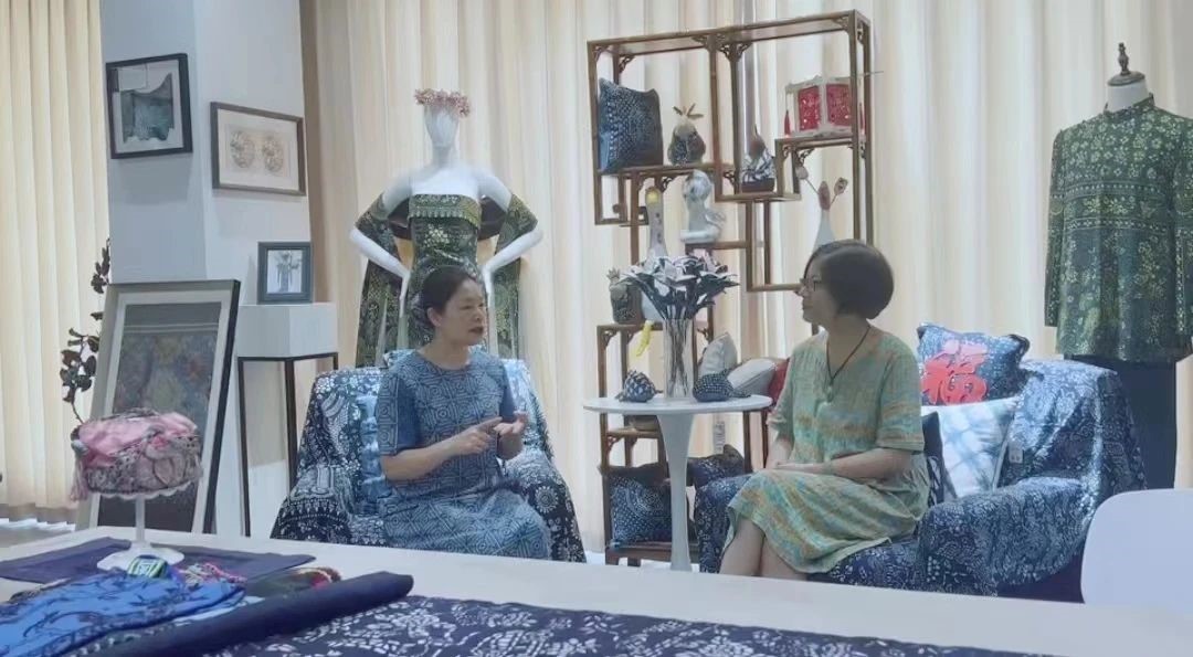 杨绣丽还采访了安亭药斑布传承人胡苏芬女士,听她介绍安亭药斑布的制作工艺和承载的民俗文化。