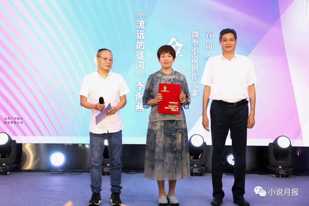 金奖获得者李海燕在获奖感言中讲述了她的获奖作品《流远的徒河》的创作灵感,表示本次在全球性的文学大赛中获得金奖,既是压力也是动力,她会在微小说创作这条路上,一如既往地走下去,不负众望,创作出更好的作品。她说:“因缘这场文学赛事,我从渤海之滨的一座名为葫芦岛的小城,来到山东临沂。两千字不到的小说作品,经过时间的烘焙和沉淀,凝聚了母亲河的灵魂之光和深刻的内涵,凝聚了我对母亲河的敬畏之情,书写她的时候,我心中充满了感动和感恩。”