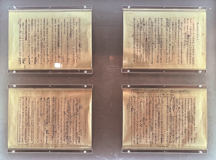 手稿、书信、日记、图书、便笺、函件、字画、照片……多元的文物样式、丰富的展品内容,让徜徉展厅的参观者有若回到那段波澜壮阔的历史岁月。展览第一单元“问苍茫大地谁主沉浮”展出了中国现代诗人、翻译家萧三创作的《毛泽东同志的青少年时代和初期革命活动》《抗日军政大学》《在枣园过年》三部著作手稿,集中呈现伟人的青春岁月。同时展出的还有毛泽东《浣溪沙·和柳亚子先生》原文、画家高泉的油画《决策出兵》等。