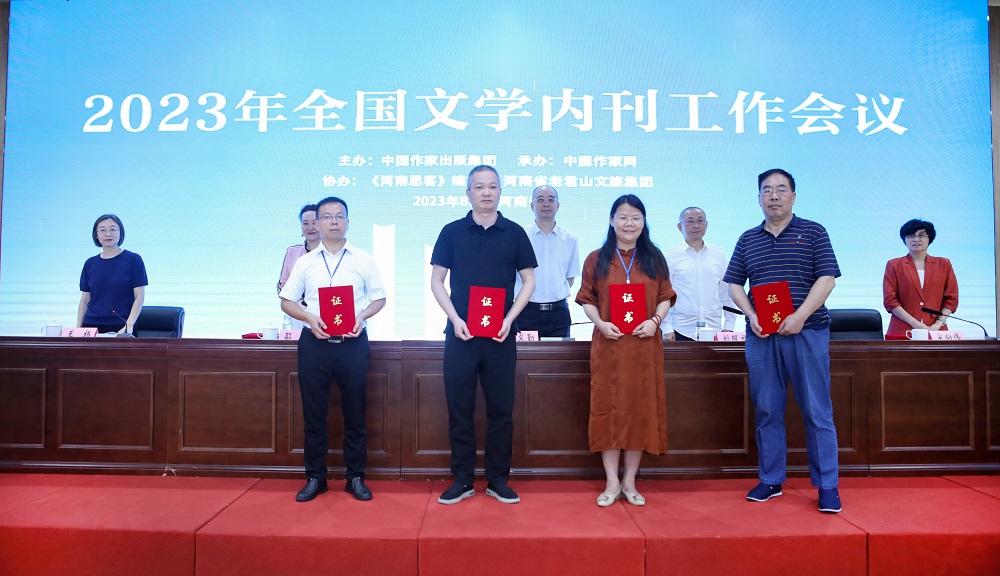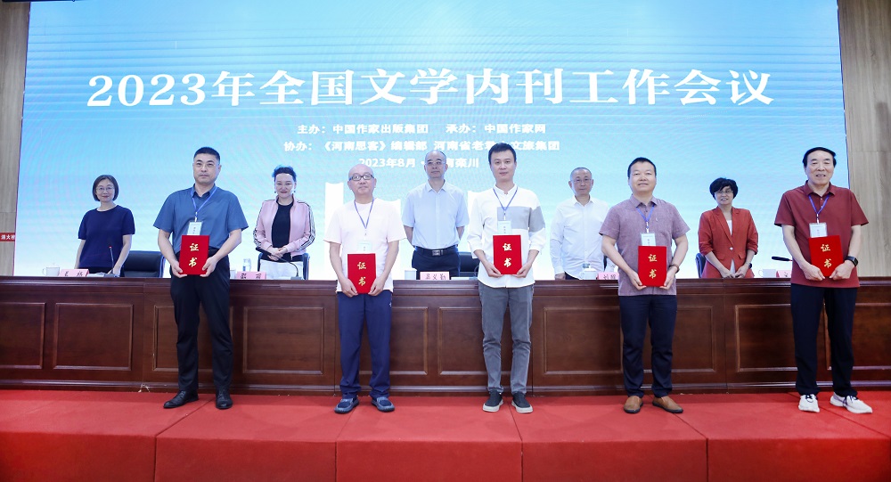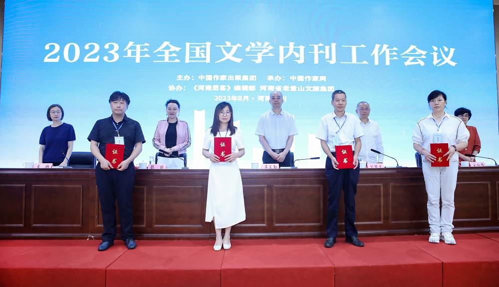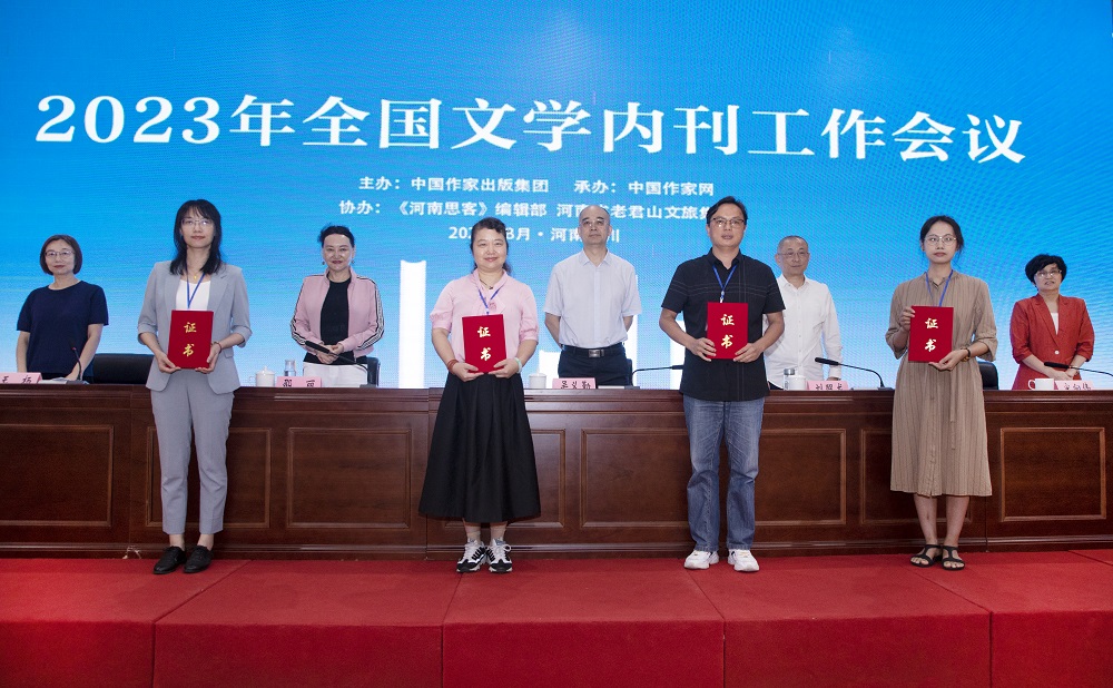 2023年,为深入学习贯彻党的二十大精神,紧密联系全国文学内刊,生动展现广大内刊精神风貌,激发驻站内刊的生机活力,进一步提升内刊文学品质,中国作家网面向驻站内刊发起优秀作品征集评奖,累计收到来自全国的44种文学内刊报评作品共328篇,经过严格评审,最终评出一二三等奖共30名。会上,获奖内刊编辑代表领取了证书。