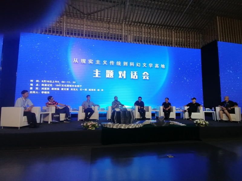 肖克凡、石一枫、姚海军、超侠、杨遥等作家以及蒋述强、窦文章等科学家与刘慈欣对话、交流对现实主义和科幻文学的体会与见解。活动由中国作协社联部主任李晓东主持。