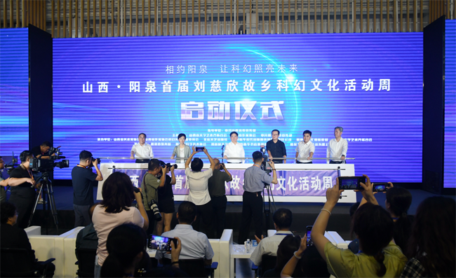 8月15日,由山西省委宣传部指导,山西省文联、山西省作协、阳泉市委宣传部共同主办的首届刘慈欣故乡科幻文化活动周在山西省阳泉市启动。活动主题为“相约阳泉 让科幻照亮未来”。山西省委常委、宣传部部长张吉福,山西省文联党组书记李斌,山西省作家协会党组书记邢利民,阳泉市委书记雷健坤,阳泉市委常委、宣传部部长郭晓东,中国作协科幻文学委员会主任、山西省作协副主席刘慈欣,《科幻世界》杂志副总编辑姚海军等出席启动仪式。