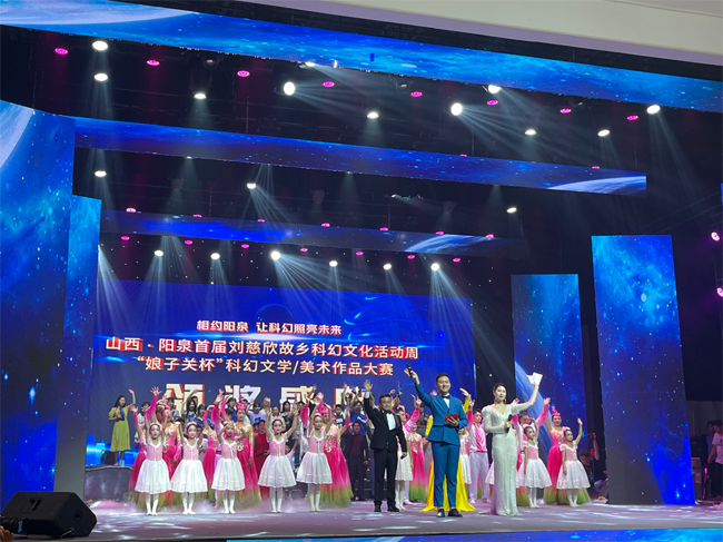 在8月15日下午举行的“娘子关杯”科幻文学/美术作品大赛颁奖盛典上,刘慈欣、姚海军、超侠等为获奖者颁奖。大赛由山西省作协、美协、阳泉市委宣传部联合主办,共收到来自全国各地的文学作品465篇,美术作品1728幅。王云轩的《重生之愿》、寇妙琦的《面朝大海指南》和邵子岐的《天算》获得文学类一等奖。张利慧凭借国画《太空家园》获得首届全国青少年科幻美术作品大赛最高奖项。