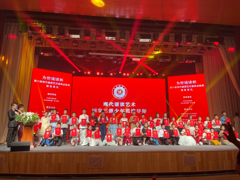 8月20日,由中国作家协会全民阅读推广办公室指导,中国社会主义文艺学会、中国文联《中国文艺家》杂志社、中国民族文化艺术基金会等联合主办,北京诵读文化发展有限公司承办的第六届“现代诵读艺术盛典总展演颁奖典礼暨诵读艺术家颁奖盛典”在中国现代文学馆举行。中国作协社会联络部主任、全民阅读推广办公室负责人李晓东,中国文联《中国文艺家》杂志社社长向阳,中国民族文化艺术基金会管委会主任宋国宏,中国社会主义文艺学会当代工作艺术委员会执行副主席、“为你诵读”创始人、盛典组委会主任项建新,中国戏剧家协会朗诵专业委员会主任瞿弦和等诵读艺术家、诗人与会。盛典以“传诵文学精品,弘扬诵读文化”为宗旨,旨在发现更多适合诵读的文学精品,并选拔出更多优秀的诵读艺术人才。