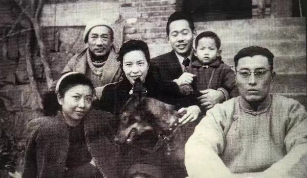 无名氏与赵无极夫妇等人摄于杭州葛岭别墅。左起:谢景兰、林风眠、杨女士、赵无极及其子、无名氏