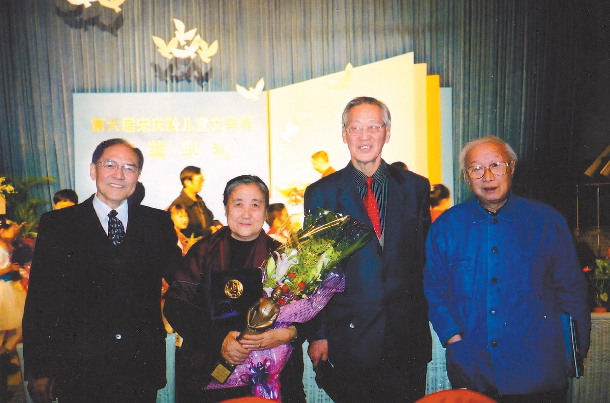 2003年10月,第六届宋庆龄儿童文学奖颁奖典礼举行。从左至右依次为束沛德、浦漫汀、蒋风、任溶溶。