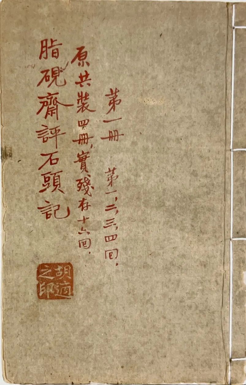 胡适旧藏《脂砚斋重评石头记》4册,封面书名、卷数系胡适所书