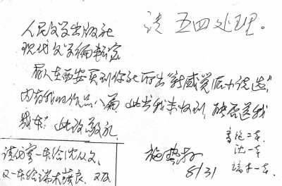 同一时期,施老还给我写过一封与《新感觉派小说选》《现代派诗选》的出版没什么关系的信: