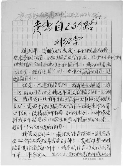 我藏有他的长篇小说《豆棚瓜架雨如丝》手稿,300多页,是用钢笔一个字一个字写下来的。初稿有一半是在儒林村写的。作品主要写了老虎跳这位京东运河滩老农的一生。老虎跳既是传奇式英雄,又是现实里普通人物,其形象有着多重历史内涵,他历尽人世沧桑,却始终不改初心。曲折的情节,明丽的画面,纯真的感情,优美的语言,经过作家心灵的酿制,升发出荡人心神的力量。这是对古老运河的深情眷恋,是对多灾多难运河的不平回忆,也是对苦难中不失赤子真情的运河儿女的慨叹和褒扬。