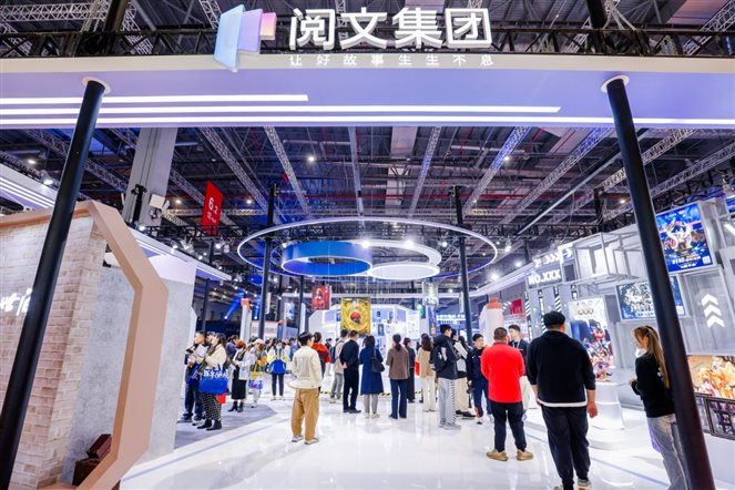 在今年的长三角文博会上,阅文展台以“IP宇宙”为设计理念,设置了内容储备、精品创作、网文出海、作家生态、版权保护、技术赋能等板块,涵盖网络文学全球影响力、现实题材作品、作家及作品培育、AIGC辅助创作、影漫游多元改编等丰富内容,让观众通过实体出版、有声、动漫、影视、游戏、衍生品等不同形态感受好故事的魅力。