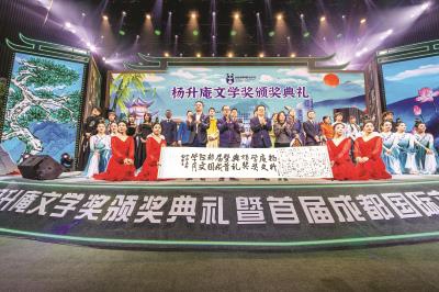 “杨升庵文学奖颁奖典礼暨首届成都国际文学月开幕式”日前在成都新都区升庵书香剧场举行。现场揭晓了首届杨升庵文学奖获奖名单并举行隆重的颁奖仪式。