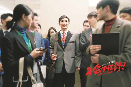 与其他小成本喜剧片相比,《年会不能停!》虽然也聚焦城市平民生活题材,采取了较接地气的创作视点,但相比《人生路不熟》等喜剧片的类型与主题杂糅,《年会不能停!》十分明确地讨论了当代城市中最值得关注的群体之一——大厂打工一族面临的生存问题。随着国家城市化进程的逐步升级和市场经济的高速发展,“打工族”成为21世纪标志性的城市生活群体。近年来,反映城市创业和私企员工生活的作品逐渐汇聚成中国电影美学中不可忽视的重要选材。《中国合伙人》《奇迹·笨小孩》等影片用颇具气魄的励志片故事模型,描绘了开放市场环境下中国创业青年群体的励志故事。而《年会不能停!》的创作团队在经过大量实地调研后,别出心裁地选择了喜剧类型,从创业故事的终点描绘出市场经济发展进程中一些平日难以察觉的侧面。