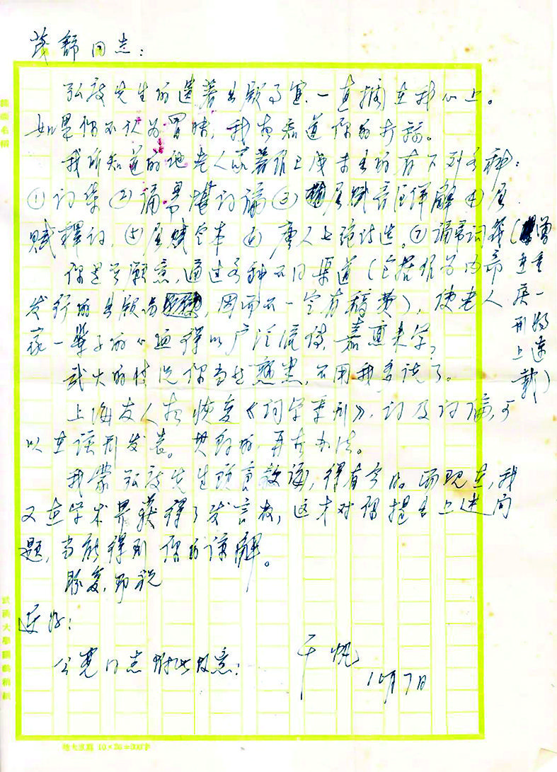 “弘度先生的遗著出版事宜,一直搁在我心上。……我蒙弘度先生饮食教诲,得有今日。” ——程 千 帆致刘茂舒,1979年10月7日