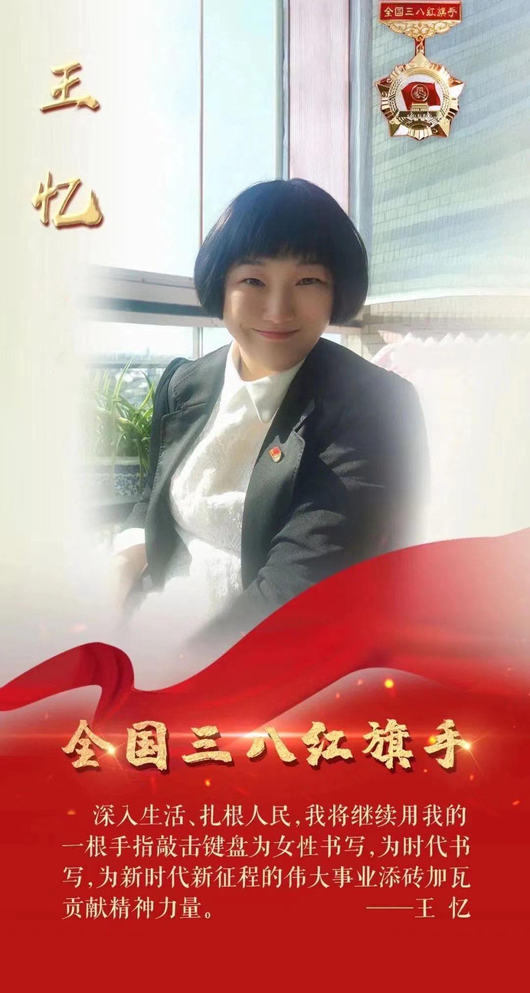 2023年3月,是33岁的王忆人生中最高光的时刻!中华全国妇女联合会决定授予她“全国三八红旗手”光荣称号。她成为江苏省十位获此殊荣者之一,更是今年全国唯一获此殊荣者的作家!