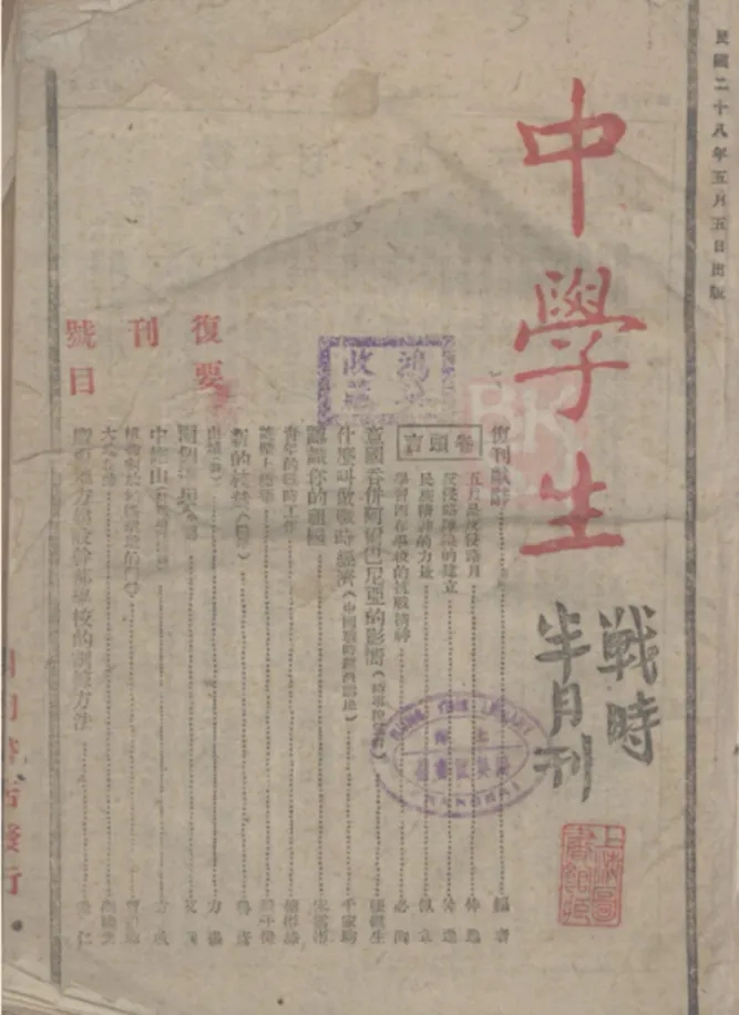 [25]《复刊献辞》,《中学生战时半月刊》,1939年5月5日复刊号。