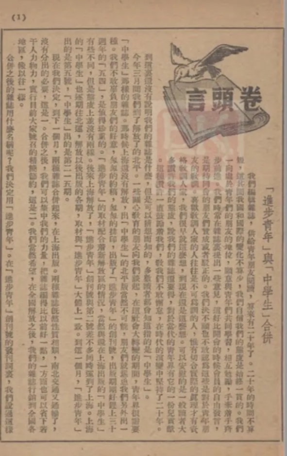 [53] 卢弓:《从〈中学生〉到〈进步青年〉》,《进步青年》1949年第218期。
