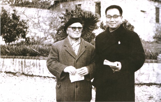 郑恩波作为《人民日报》记者代表团团员兼翻译访问阿尔巴尼亚费里区,与雅科夫·佐泽(左)合影留念 1974年12月3日摄