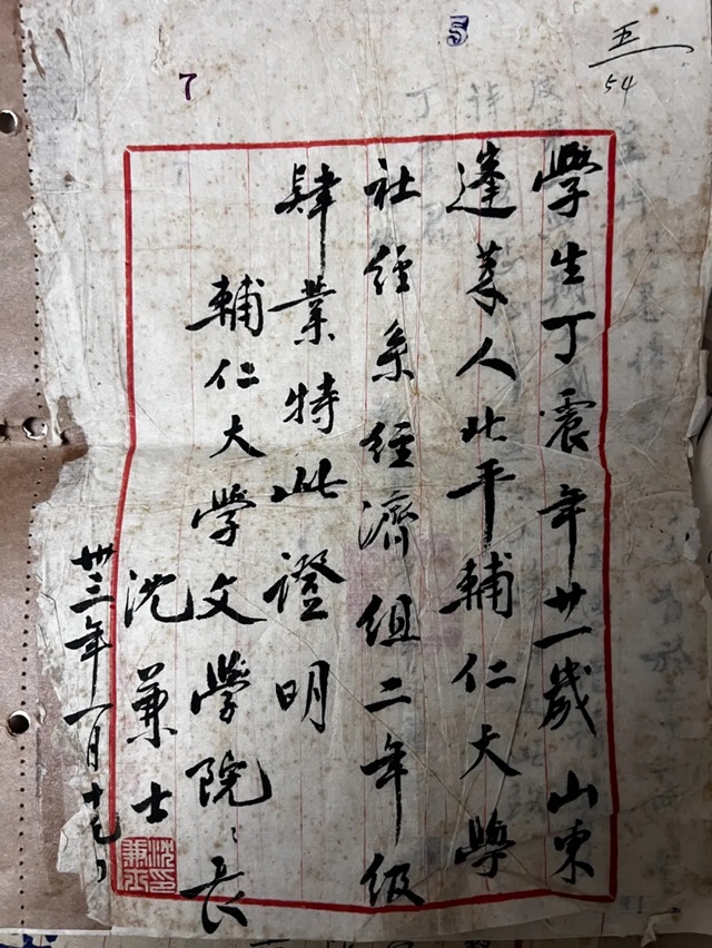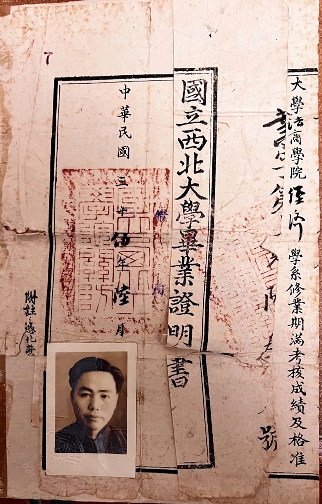 因抗战爆发,父亲1943年由辅仁大学肄业,转至西北大学就读,1946年毕业