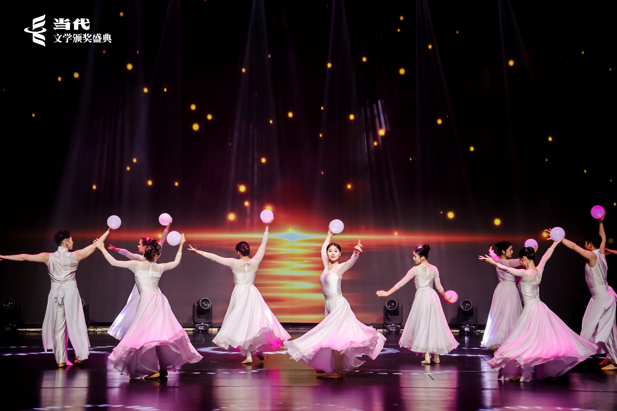 专门根据五佳作品内容编排的舞蹈,分别引导获奖作家走到舞台中心、聚光灯下。在获奖感言中,毕飞宇幽默回顾了十六年前获得这一奖项的经历,表达与本次获奖小说《欢迎来到人间》出版方人民文学出版社的深厚情谊;陈彦表示,对创作者来讲,最重要的还是生活,所有写作的成绩都是生活的恩赐;张平表示,任何写作,只要能站在人民的立场上,那么作品就能得到老百姓的支持;李宏伟提出了自己的创作思考,认为文学就是提供“可能”的一种艺术方式,而变化总是在转换思路之后到来;因故未能到场的获奖者贾平凹也以视频方式分享了心得,表示往后的写作还是要关注现实、研究现实、以文学来反映现实,这是时代、国情赋予自己的责任,也是一个作家生存的意义。