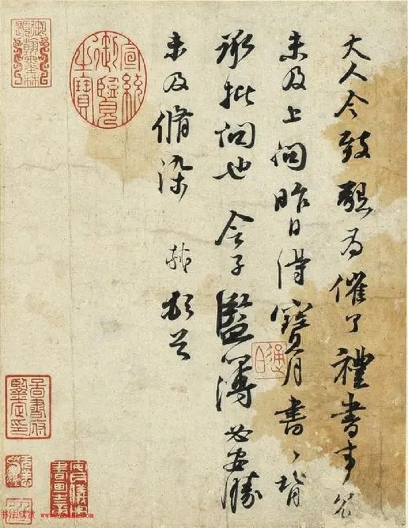 苏轼在致惟简的信中写道:“某有吴道子绢上画释迦佛一轴,虽破烂,然妙迹如生,意欲送院中供养。如欲得之,请示一书,即为作记,并求的便附去。可装在板子上,仍作一龛子。此画与前来菩萨、天王无异,但人物小而多尔。”