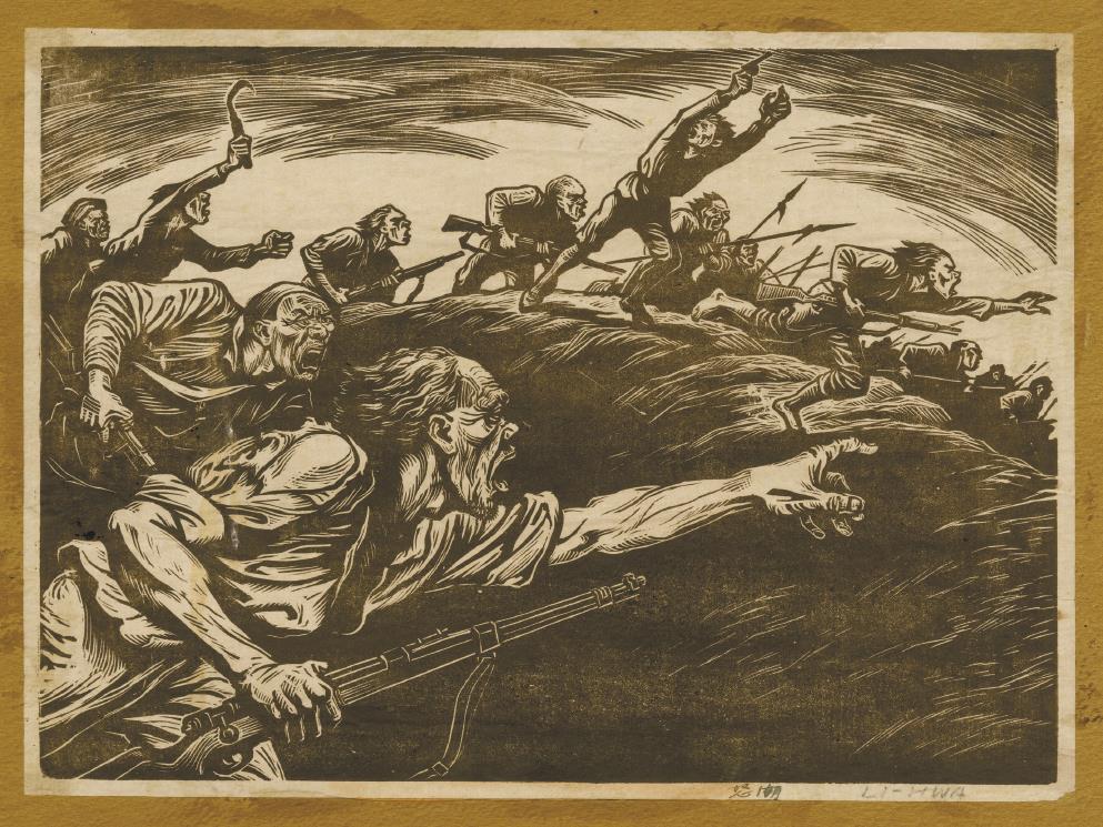 以上木刻均收入史沫特莱编选并作序的《中国木刻:四万万人民的新艺术》(Touchstone Press,1948) 封面图片源自李桦《怒潮》组画之《抓丁》黑白木刻(1946年) 均资料图片