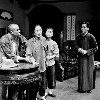 1954年,北京人艺版《雷雨》首演,夏淳任导演,朱琳饰鲁侍萍(右三),于是之饰周萍(右一)