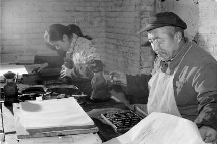 1981年,中国书店木版刷印厂工人用传统印刷技术刷印古书。 吕坚摄