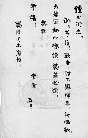 冰心与杨绛伉俪的通信都不长,如闲话家常、日常打趣,显然彼此之间很熟悉,互相探望、搬家、收到的消息等都互相分享。冰心还“调侃”对方的作品,讨论写作心得,称“锺书同志居然心里‘天人交战’起来!事情闹大了。”